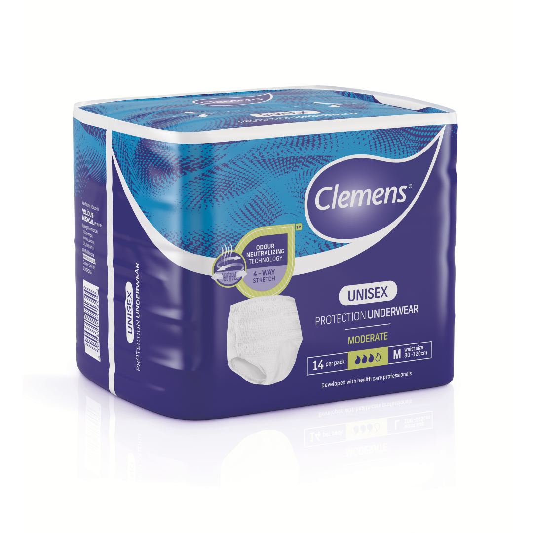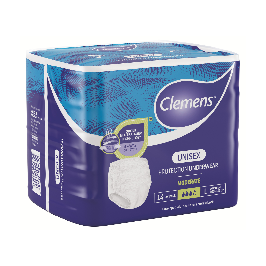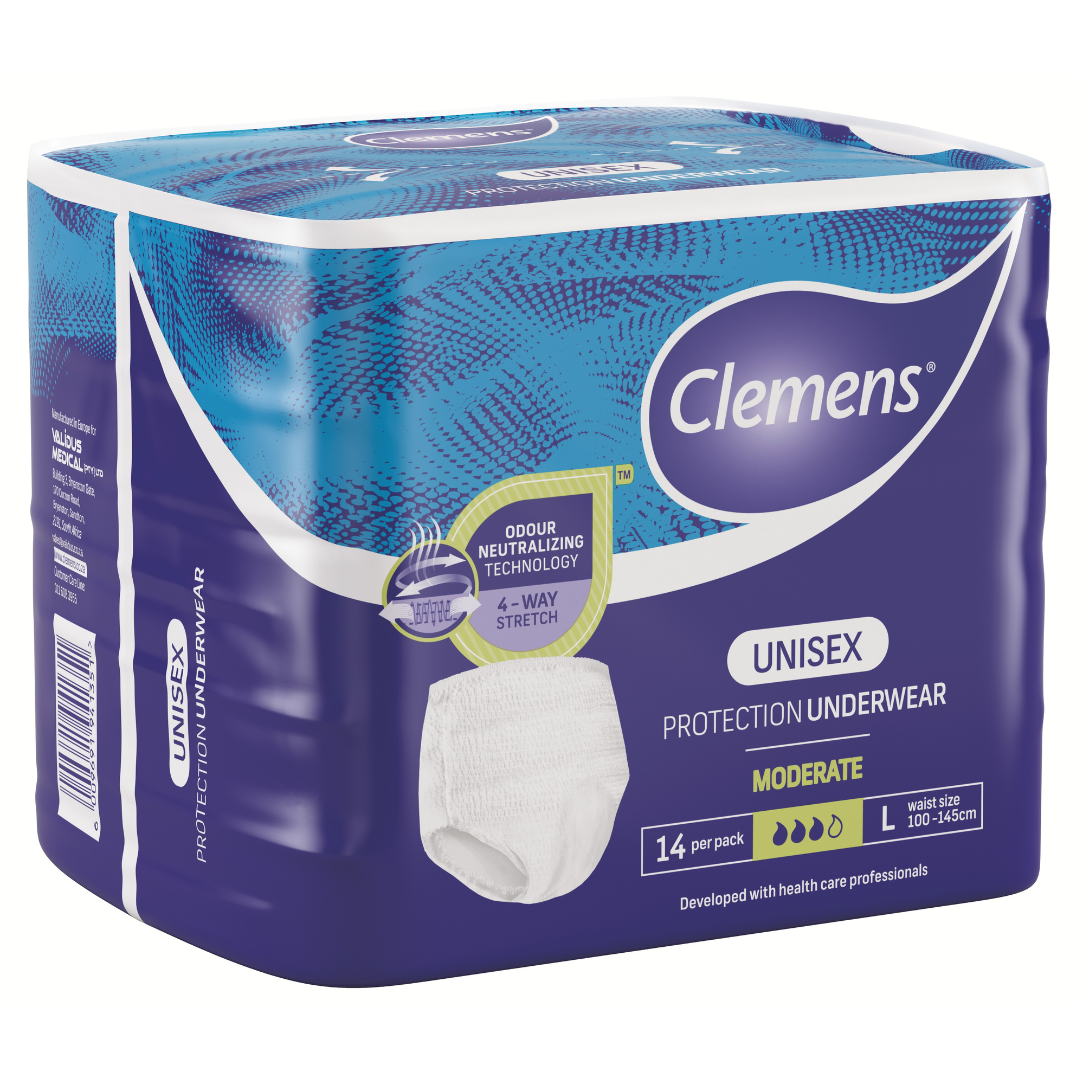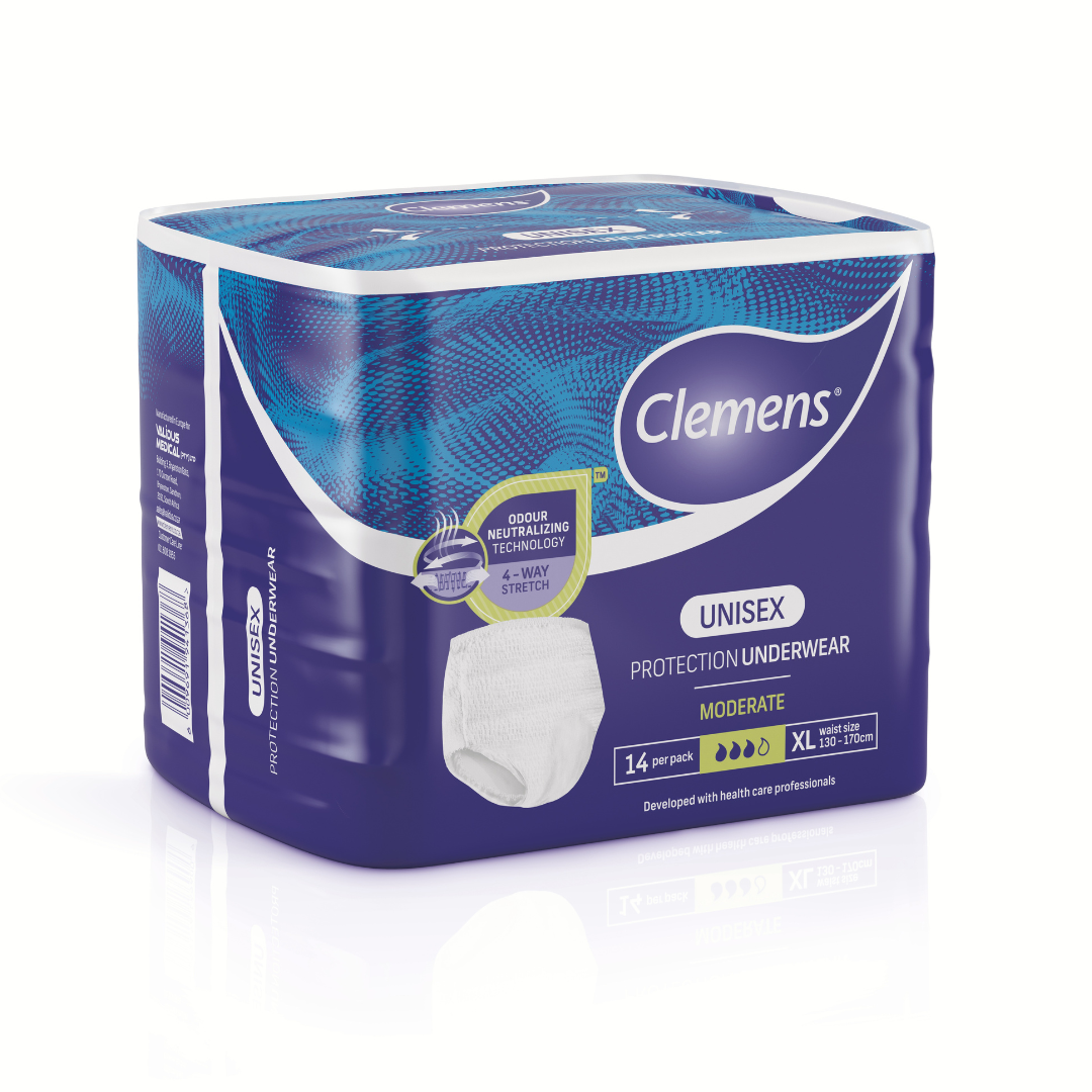 Clemens Protective underwear is designed to be worn like regular underwear, providing maximum protection for security and comfort. The protective underwear offers up to 10 hours of odour control, and has tearable side seams for easy removal.